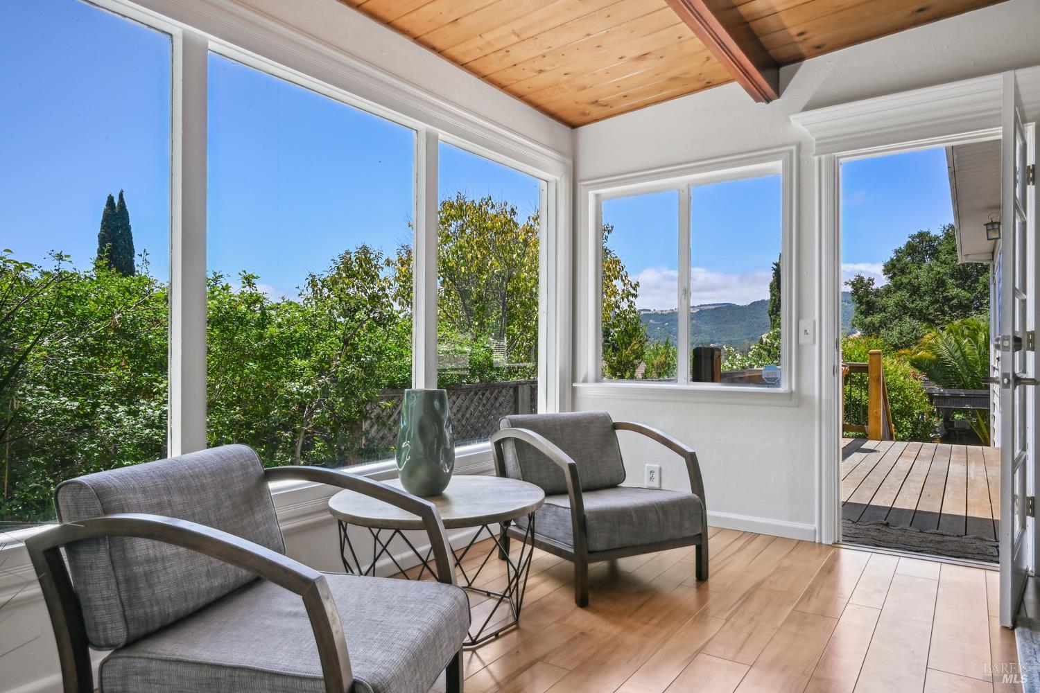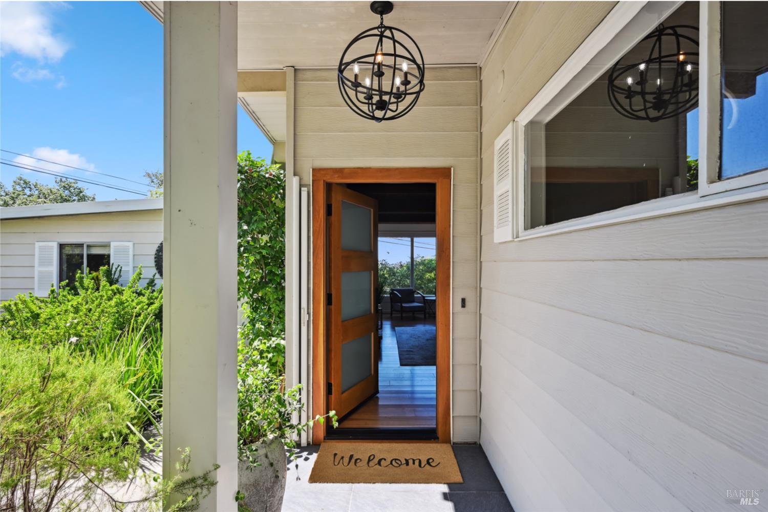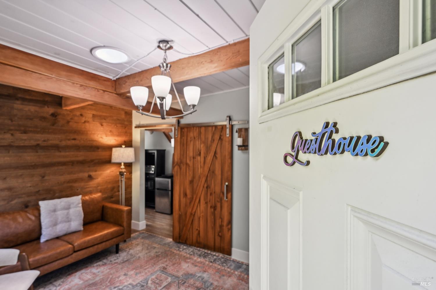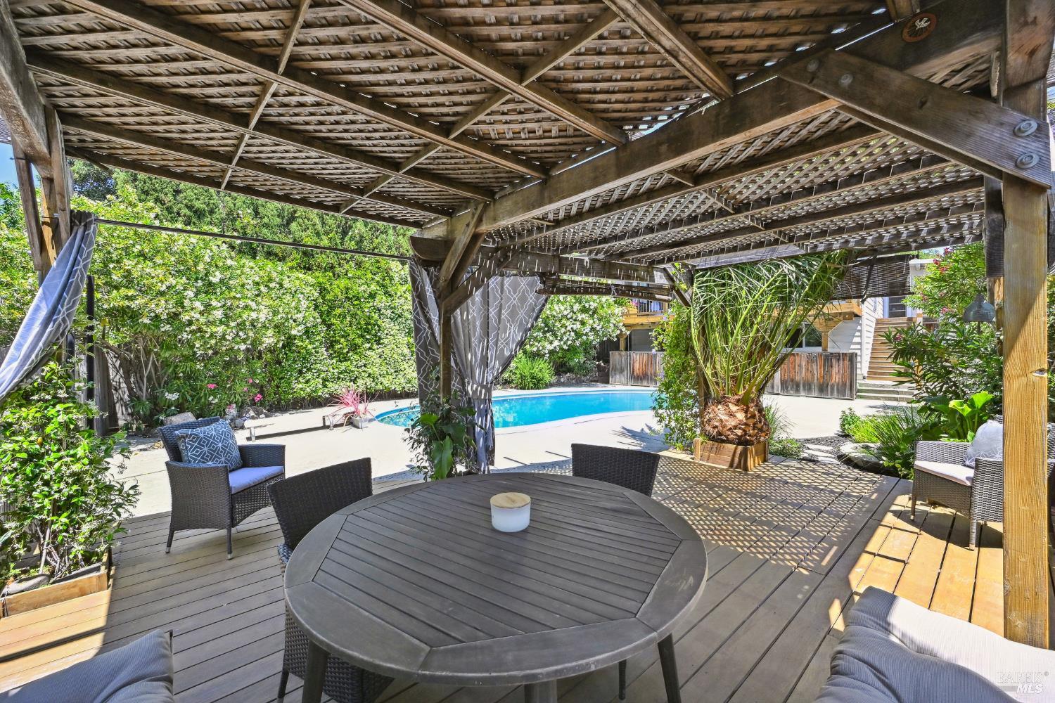 Nestled in the serene landscape of Sonoma's Wine Country, this Mid-Century Modern residence offers privacy and tranquility. French doors open to expansive views of the region's rolling hills, as well as a heated in-ground pool and pergola surrounded by lush greenery, creating a private retreat or al fresco dining experience. Ideally situated on a spacious lot, this Eichler-inspired design has abundant natural light throughout. Flexibility and income-generating possibilities: this 3BD/2BA 1,281 sq ft home can be used as a 4BD/3BA 1,581 sq ft home via the attached guesthouse, accessible either from the main home by a secret bookcase or via the guesthouse private entrance. The property is currently generating income utilizing a hosted vacation rental permit; buyer to pursue. A weekend getaway or full-time residence, this exciting and meticulously maintained home is less than ten minutes to the historic Sonoma Plaza.