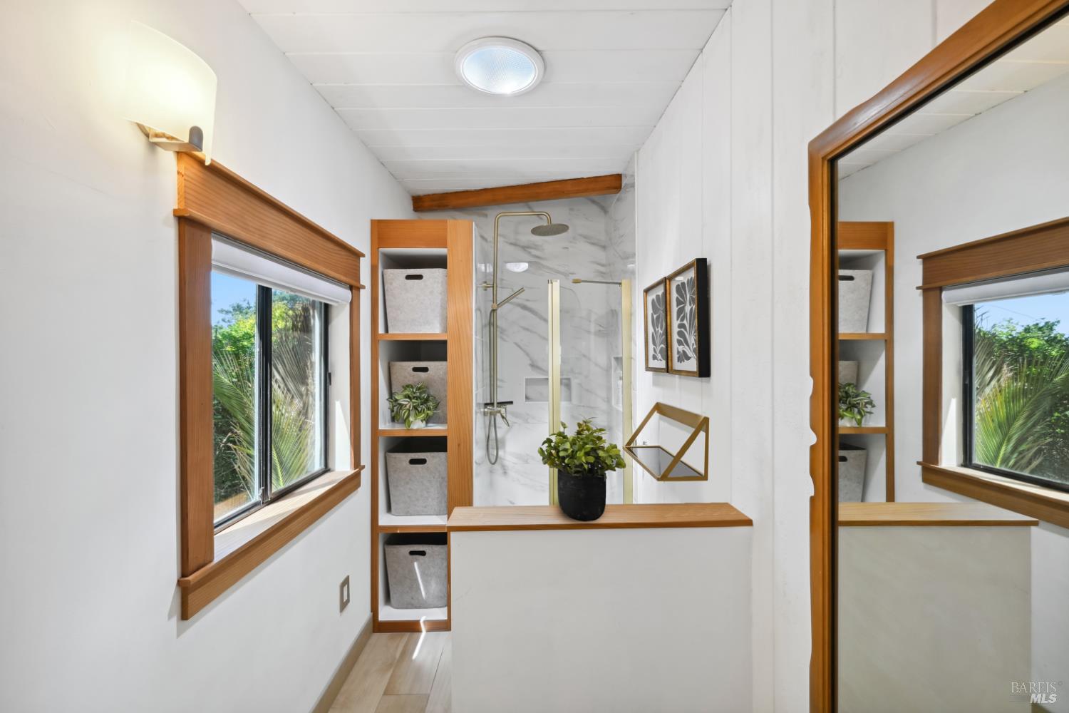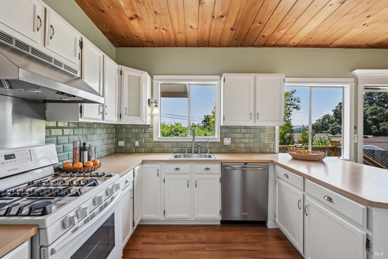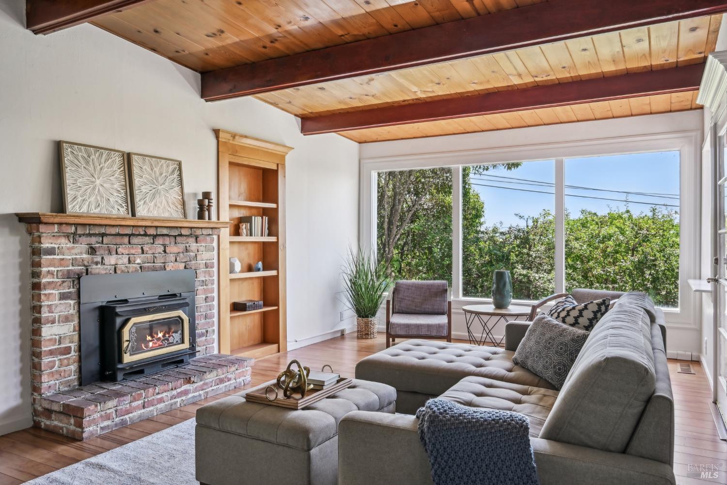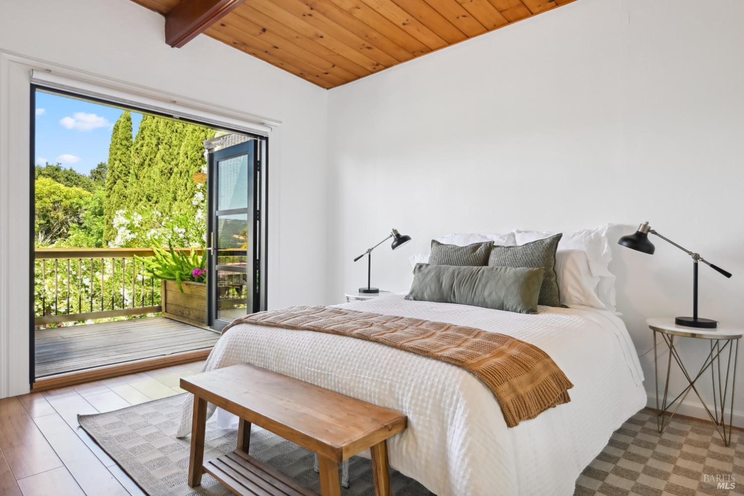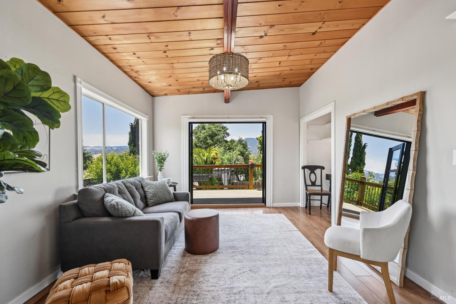 Nestled in the serene landscape of Sonoma's Wine Country, this Mid-Century Modern residence offers privacy and tranquility. French doors open to expansive views of the region's rolling hills, as well as a heated in-ground pool and pergola surrounded by lush greenery, creating a private retreat or al fresco dining experience. Ideally situated on a spacious lot, this Eichler-inspired design has abundant natural light throughout. Flexibility and income-generating possibilities: this 3BD/2BA 1,281 sq ft home can be used as a 4BD/3BA 1,581 sq ft home via the attached guesthouse, accessible either from the main home by a secret bookcase or via the guesthouse private entrance. The property is currently generating income utilizing a hosted vacation rental permit; buyer to pursue. A weekend getaway or full-time residence, this exciting and meticulously maintained home is less than ten minutes to the historic Sonoma Plaza.