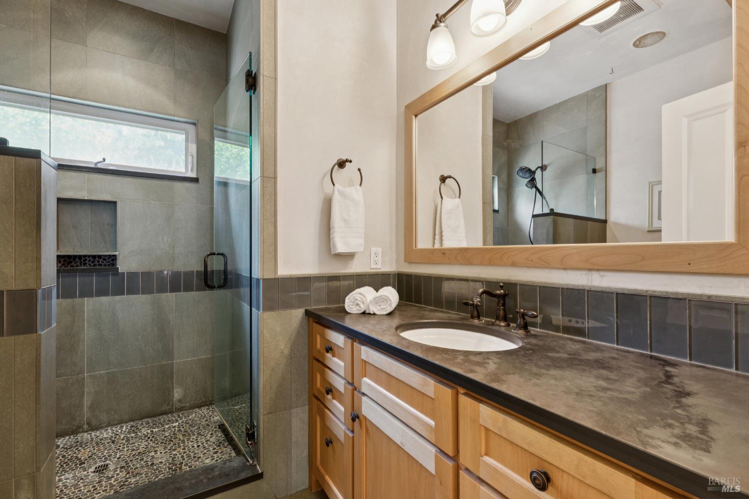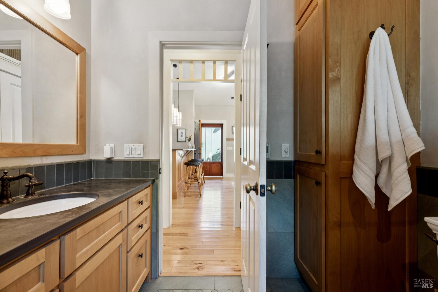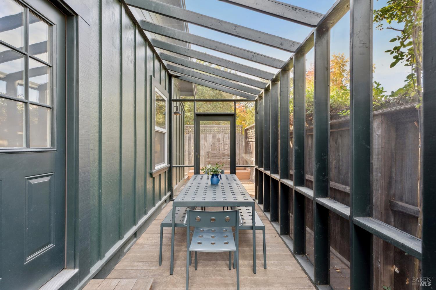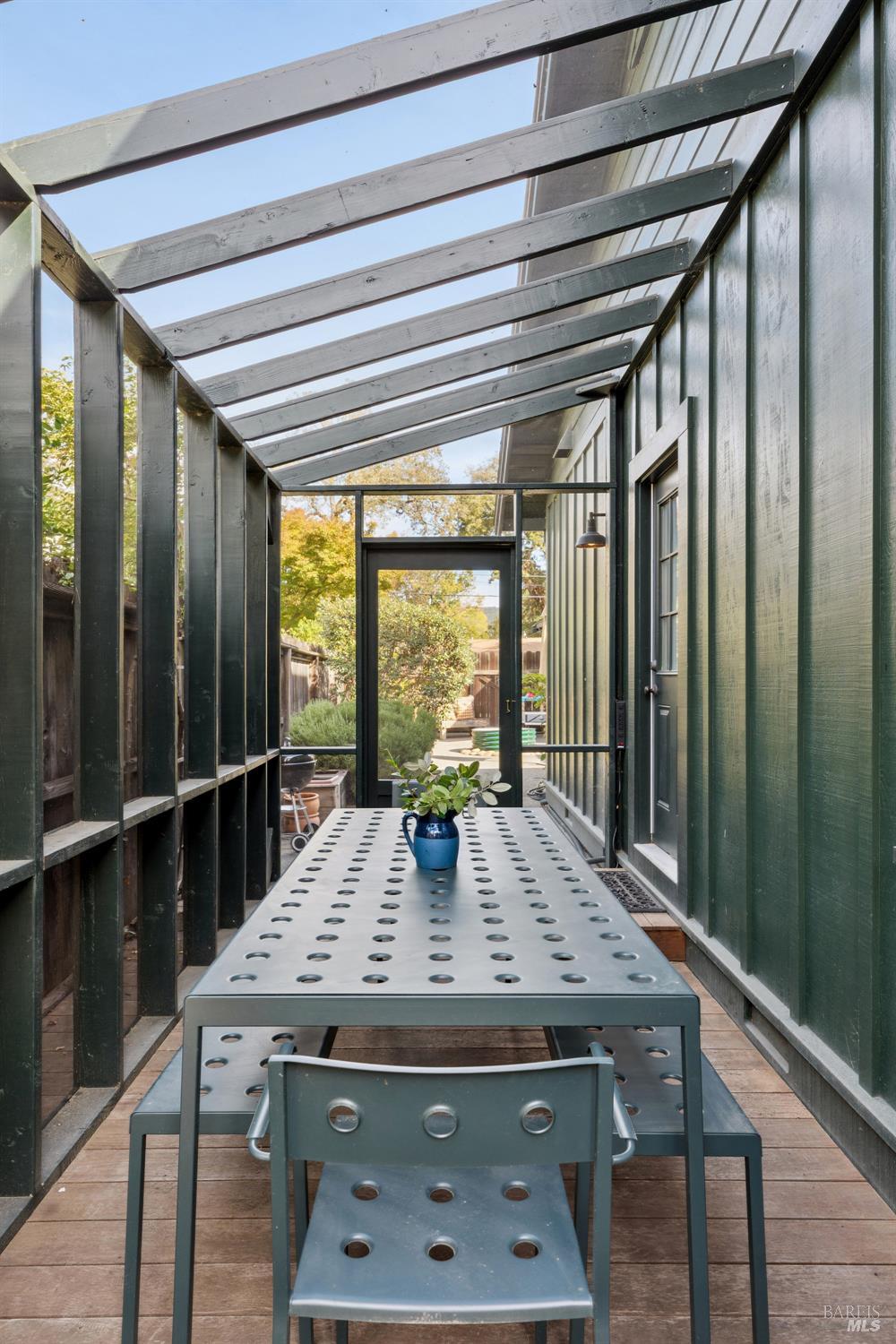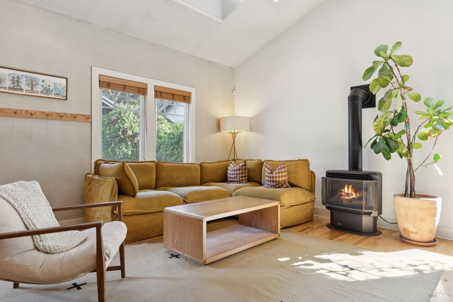 Located in the heart of Sonoma Valley, this 2BD/1BA single-level custom-built home offers 851 sq ft of living space with modern comforts in a private and tranquil setting. Thoughtfully constructed in 2006, this home boasts of high-end finishes including a copper breakfast bar top, Venetian plaster walls, Hickory hardwood floors, Alderwood cabinets, granite counters, stainless steel appliances, heated tile bathroom floor, central A/C, tankless water heater, and solar. A detached converted garage serves as an additional 400 sq ft of living space with ample storage yet can be easily returned to car storage. Among professional landscaping, a newly constructed screened-in patio provides additional space for al fresco dining and entertaining. Whether looking for a weekend escape or a full-time residence in the heart of Wine Country, this timeless bungalow is ready to welcome you home.