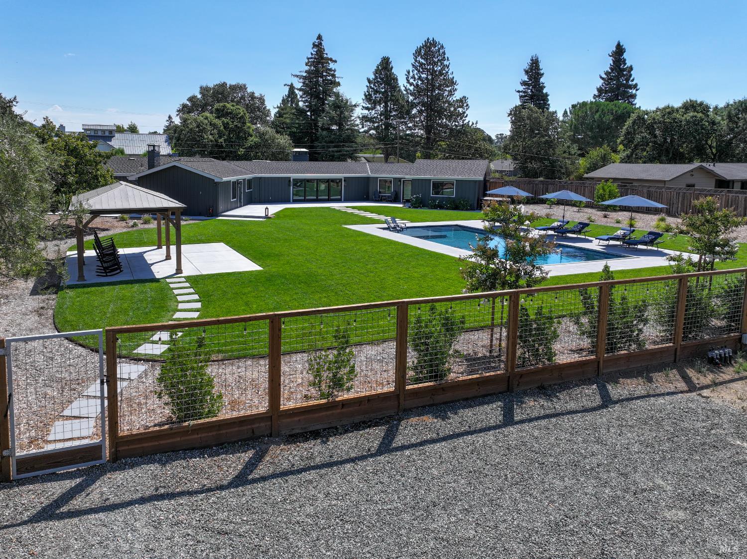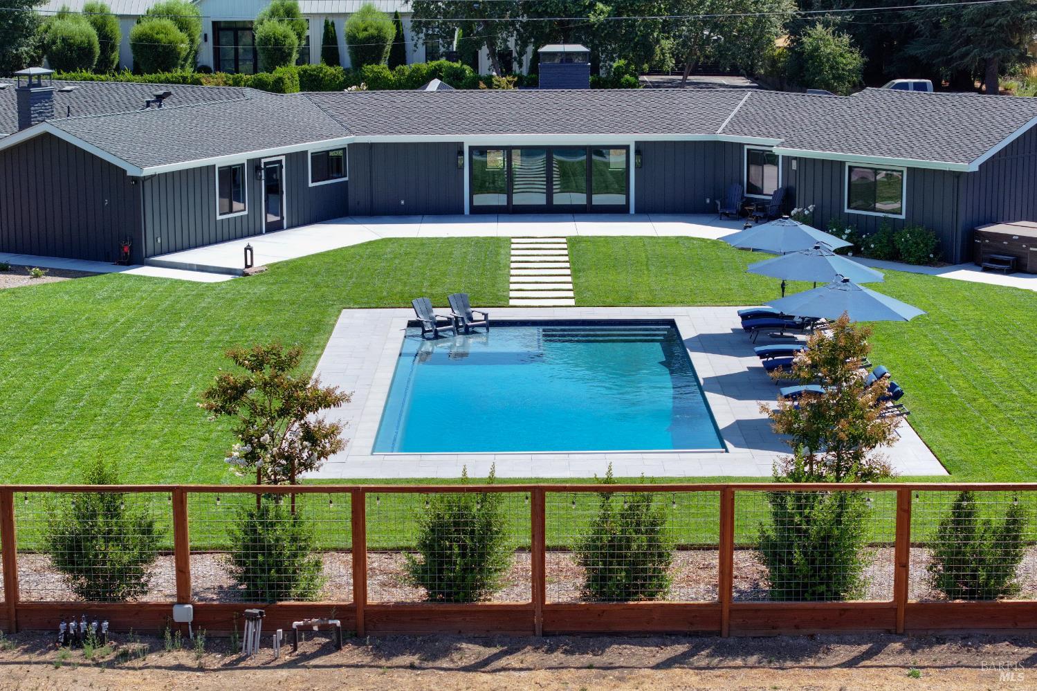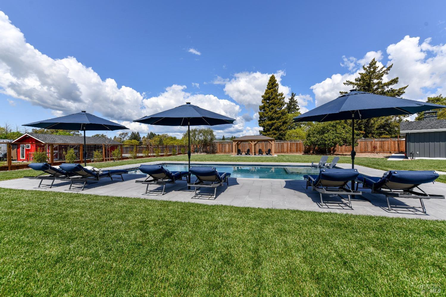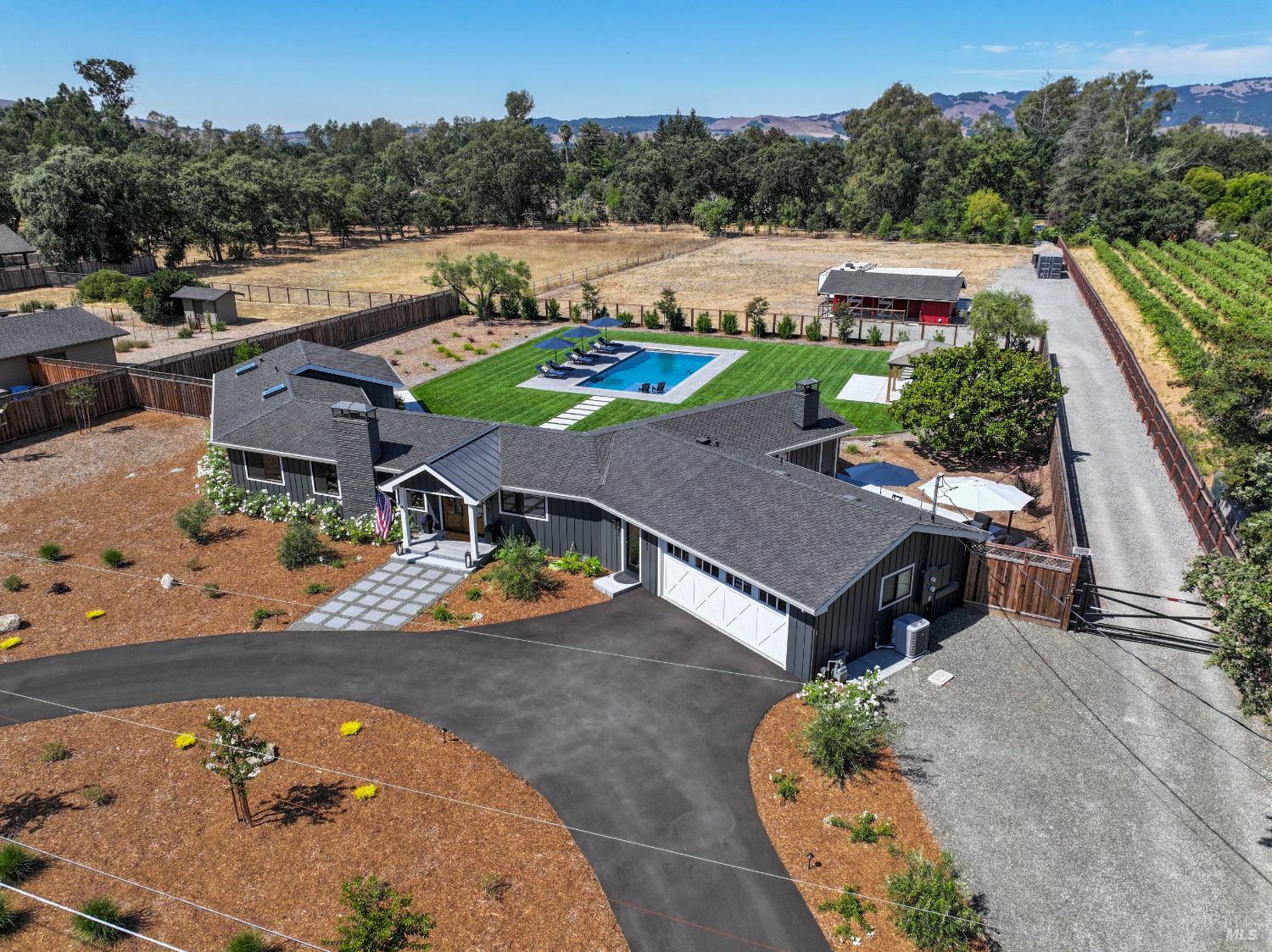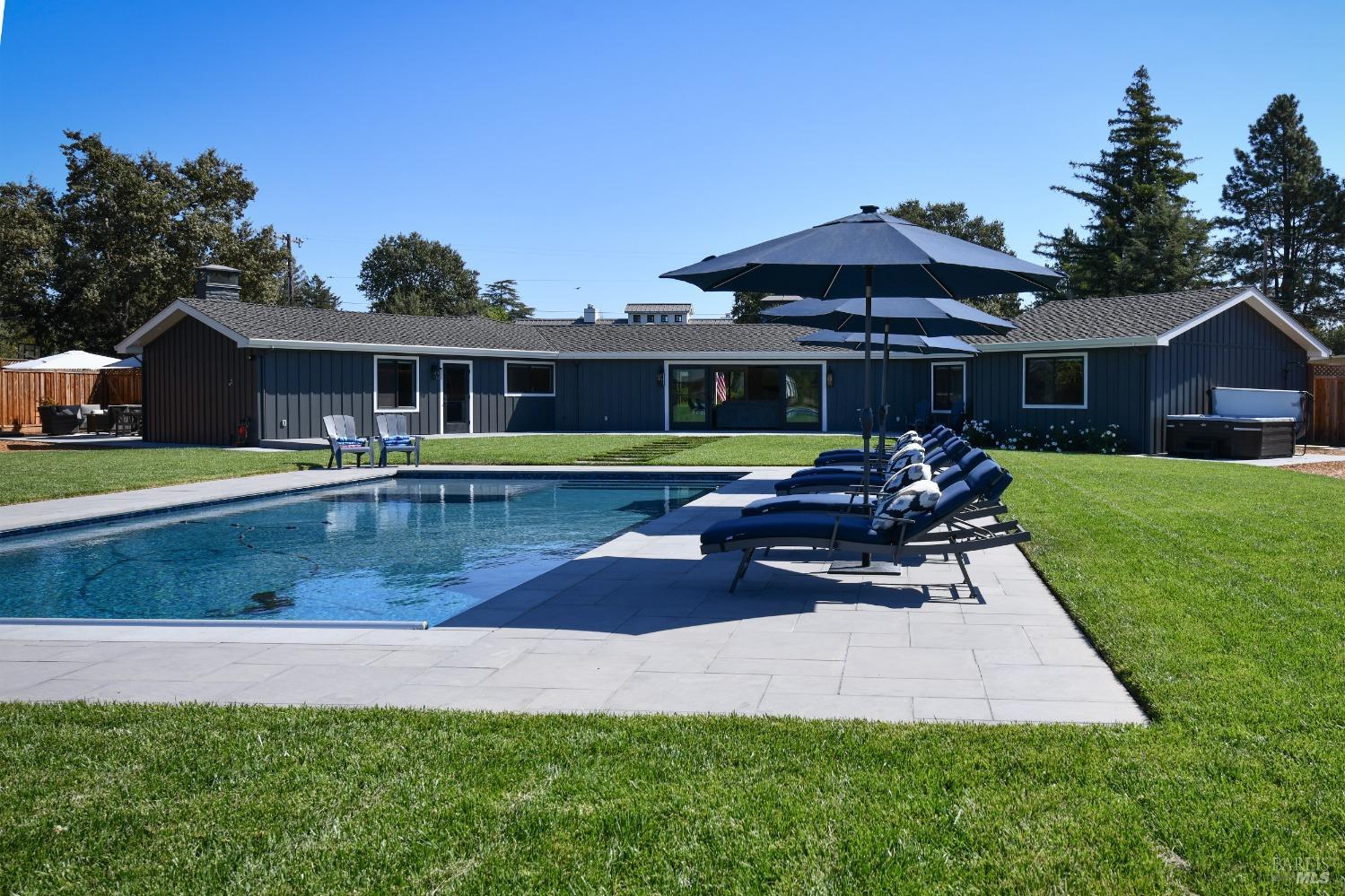 At the end of a secluded private lane, nestled in the heart of the Sonoma Valley wine country sits the epitome of the perfect getaway to escape the day-to-day rhetoric of daily life. Perfectly positioned and scaled upon 2.02 acres of a prime, level, Eastside Sonoma valley floor property, only 1.5 miles from the historic Sonoma Plaza, rests this 3BR/2.5ba meticulously constructed family estate. Attention to detail at every turn, the professionally designed floorplan encompasses a chef's gourmet kitchen featuring a 60'' Wolf Gallery commercial dual oven range with a matching stainless-steel hood, Subzero, both wine and the main refrigerator, Cove d/w, wrapped in custom shaker cabinets, topped with seamless quartz counters. The 14' expansive island allows plenty of room to prepare dinner for guests with enough space to comfortably seat 6. The large laundry, mudroom and bath are conveniently located adjacent to the oversized, finished, 2-car attached garage. Custom hardwood floors throughout make this open floor plan warm and inviting. The sliding glass doors lead you to the sparkling pebble tec pool. This country property is perfect for entertaining guests and friends or just simple intimate family gatherings. Make yourself at home in this lovely Sonoma estate property!