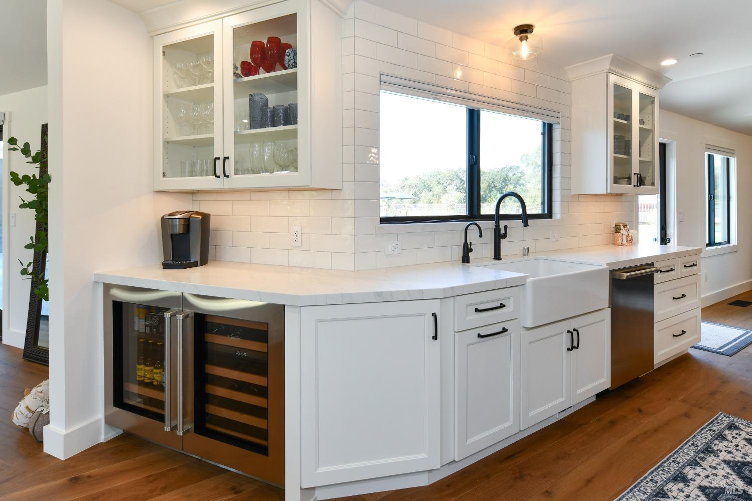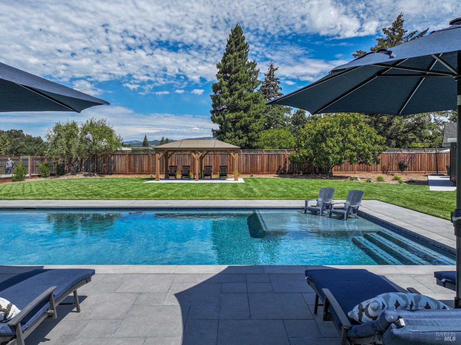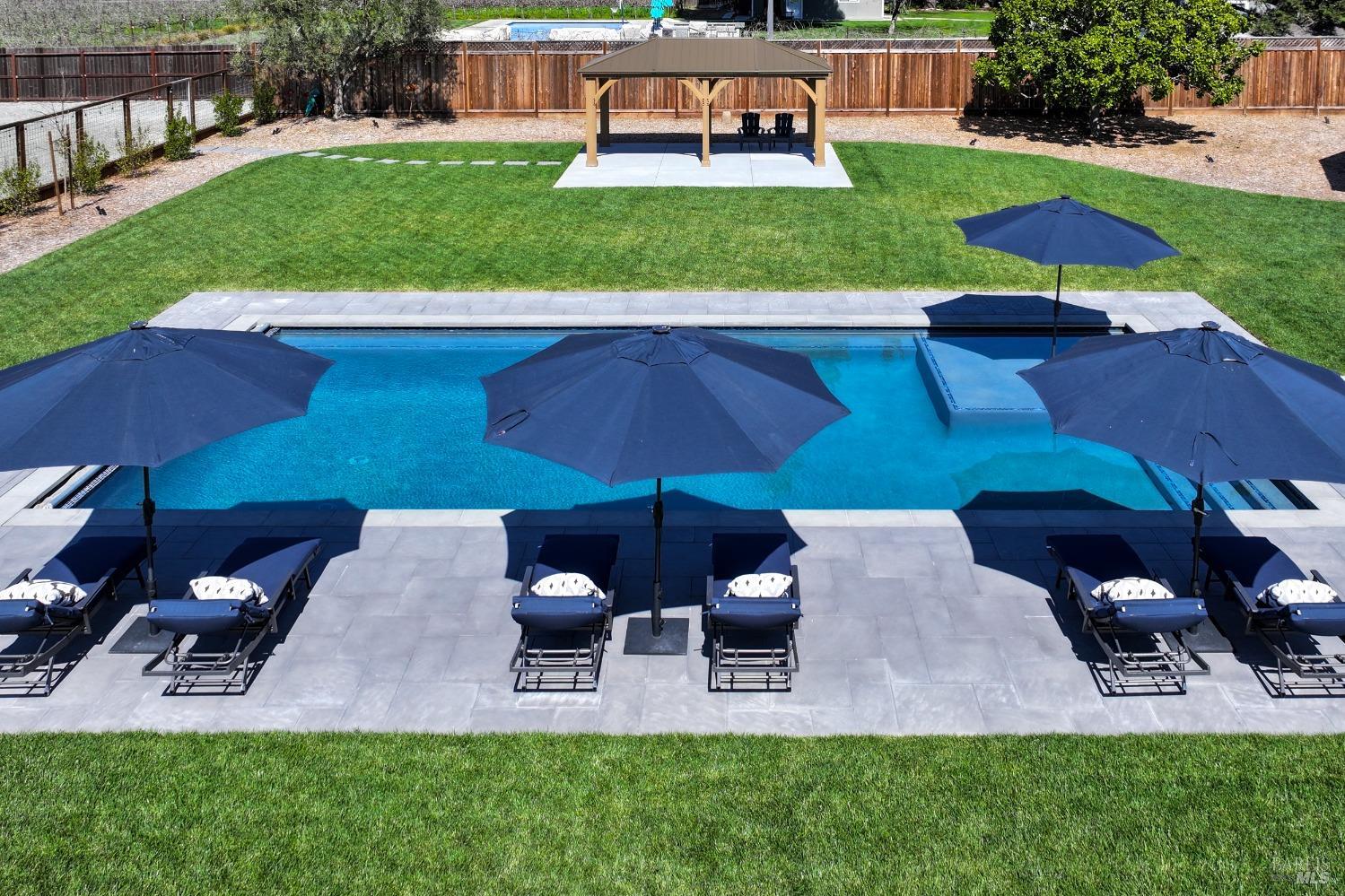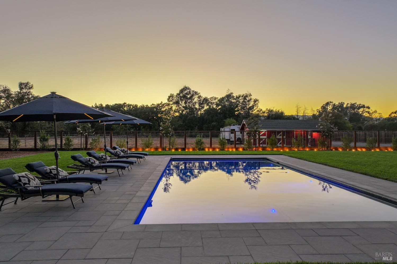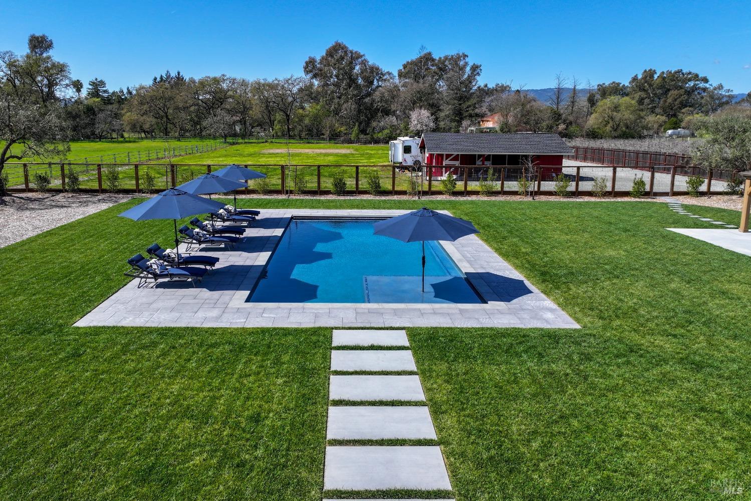 At the end of a secluded private lane, nestled in the heart of the Sonoma Valley wine country sits the epitome of the perfect getaway to escape the day-to-day rhetoric of daily life. Perfectly positioned and scaled upon 2.02 acres of a prime, level, Eastside Sonoma valley floor property, only 1.5 miles from the historic Sonoma Plaza, rests this 3BR/2.5ba meticulously constructed family estate. Attention to detail at every turn, the professionally designed floorplan encompasses a chef's gourmet kitchen featuring a 60'' Wolf Gallery commercial dual oven range with a matching stainless-steel hood, Subzero, both wine and the main refrigerator, Cove d/w, wrapped in custom shaker cabinets, topped with seamless quartz counters. The 14' expansive island allows plenty of room to prepare dinner for guests with enough space to comfortably seat 6. The large laundry, mudroom and bath are conveniently located adjacent to the oversized, finished, 2-car attached garage. Custom hardwood floors throughout make this open floor plan warm and inviting. The sliding glass doors lead you to the sparkling pebble tec pool. This country property is perfect for entertaining guests and friends or just simple intimate family gatherings. Make yourself at home in this lovely Sonoma estate property!