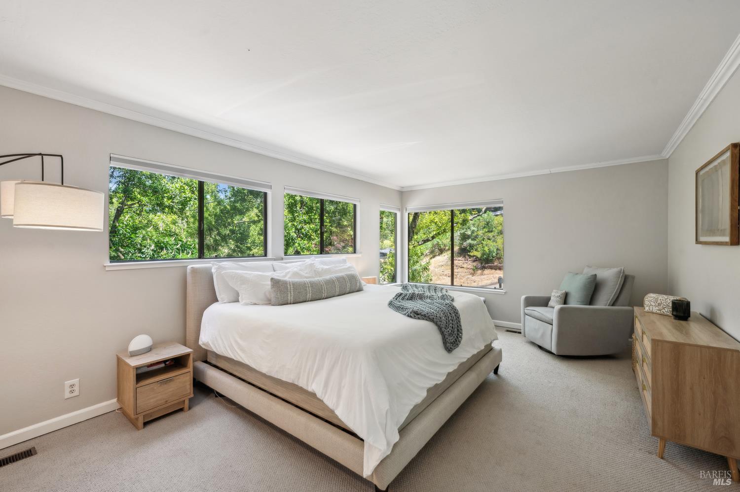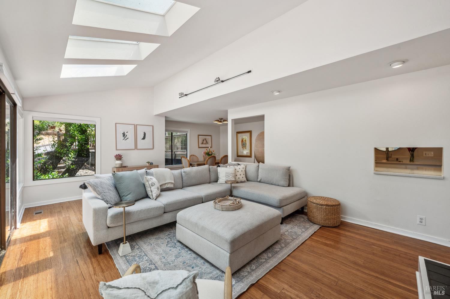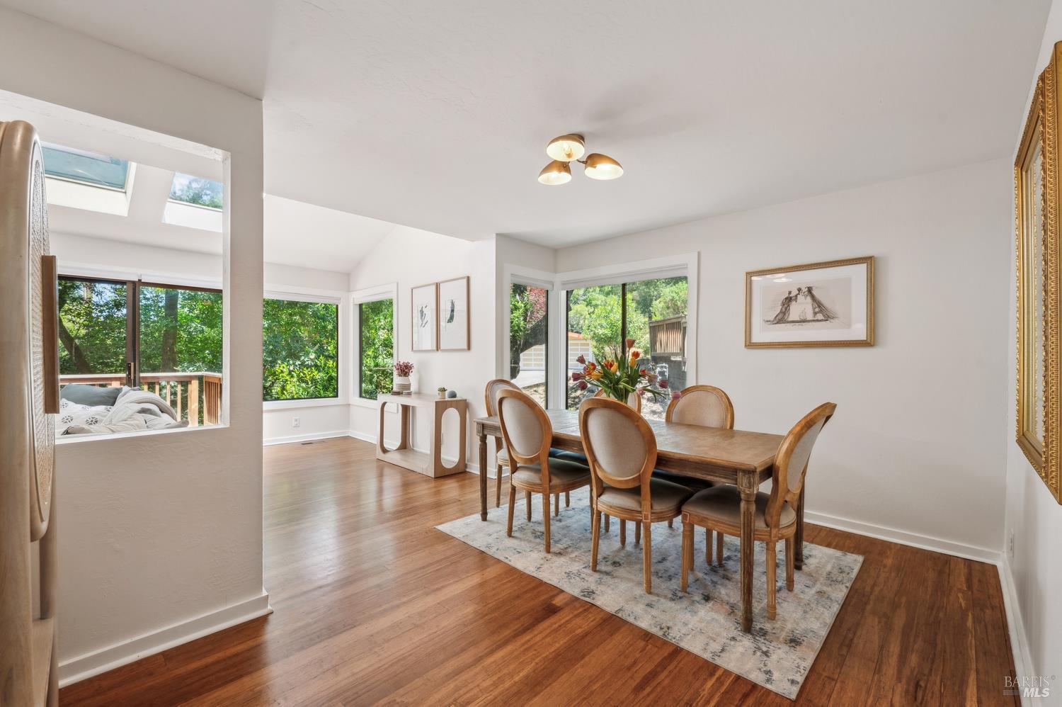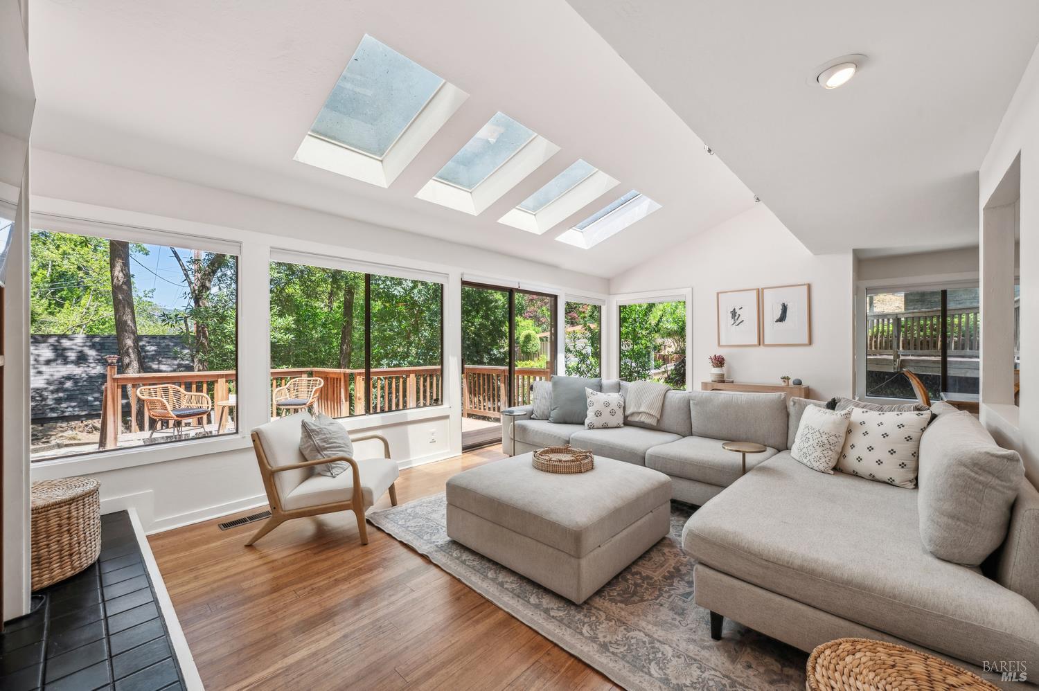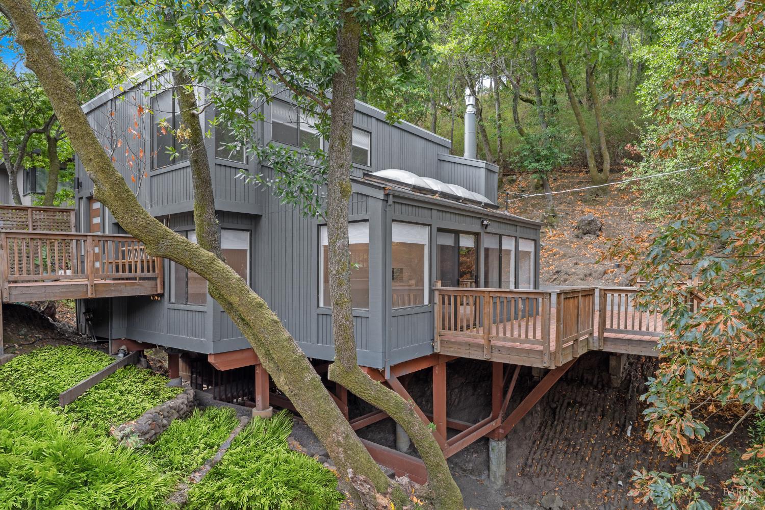 FABULOUS NEW PRICE! This beautifully updated 1,774 sq ft Sleepy Hollow home blends the original mid-century charm of vaulted, sun-drenched interiors, vintage tile bathrooms, refinished original hardwood floors and tranquil indoor/outdoor living with modern comforts tastefully upgraded to preserve its natural beauty. A rare private retreat in the coveted Ross Valley School District, this home boasts private access to Sleepy Hollow Ridge Trail and Sorich Park, updated kitchen with solarium, vaulted ceilings, and a spacious primary suite. Recent updates include a new roof, interior and exterior paint throughout, new exterior doors, quartz kitchen countertops, HVAC ducting and furnace service, window screens, energy-efficient blinds, new washer and dryer, and more. This rare find offers a tranquil retreat in the heart of Marin County with the vibrant and lively towns of Fairfax and San Anselmo just a few minutes by car or bike. NOTE: There is a discrepancy in the flood rating. The property is NOT in a Special Flood Hazard Area and flood insurance is NOT a requirement.
