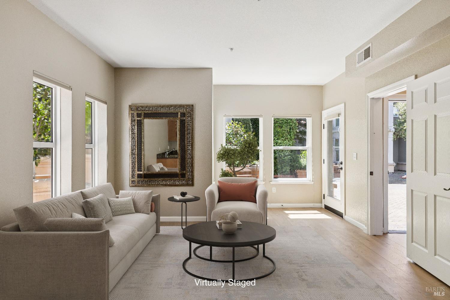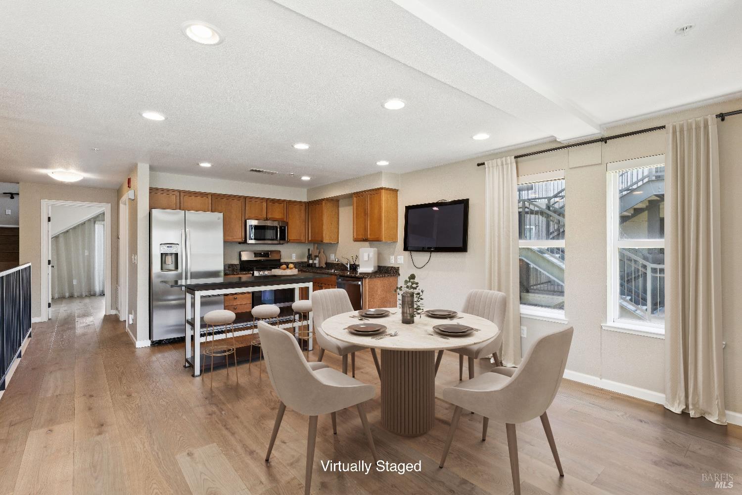 New Price! This exceptional property has undergone a stunning refresh and now benefits from a new, irresistible price. The Carneros Village Lofts, a stylish and sophisticated gated community of live/work condominiums, are located just steps from the historic Sonoma Plaza. This ideally situated end unit boasts abundant natural light and surrounding open space affording expansive exterior views. The double entry of this 2,113 sq ft multi-level unit is smartly updated with new hardwood flooring, stainless steel appliances, additional closet spaces, energy-efficient window treatments, new A/C, and the addition of usable living space on the 3rd floor. On the main level you'll find a spacious living area that includes a full bath and bedroom, expanded closets and the addition of a sports closet. On the 2nd floor you'll find the open-concept design great room with kitchen, dining, and living area. Past the kitchen is a full bath and bedroom with balcony for enjoying morning coffee or bbq set-up. On the top floor is an office-flex area and the primary ensuite with expanded wardrobes, laundry closet, and a private balcony with views of the Sonoma hills. Two assigned parking spaces in the underground garage are practical and convenient. A perfect pied-a-terre or a full-time residence, this unique condo combines function, comfort, and stylish design in one of Sonoma's most coveted locations.