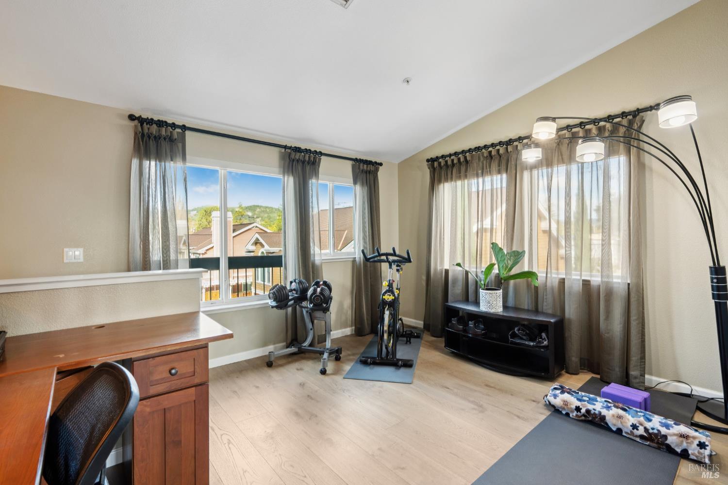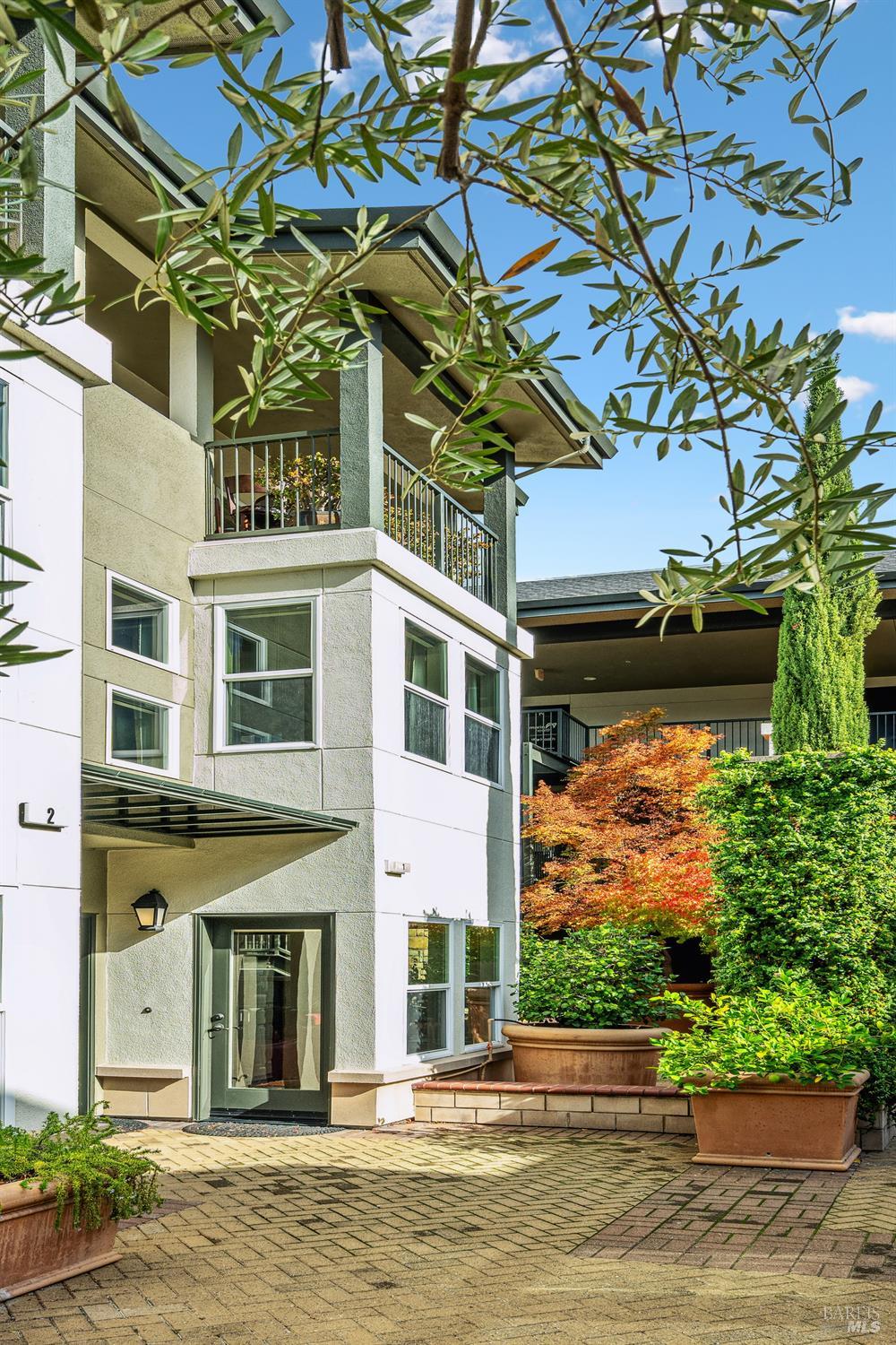 Welcome to the Carneros Village Lofts, a stylish and sophisticated gated community of live/work condominiums just steps from the historic Sonoma Plaza. The double entry of this 2,113 sq ft end unit is smartly updated with new hardwood flooring, stainless steel appliances, additional closet spaces, energy-efficient window treatments, new A/C, and the addition of usable living space on the 3rd floor. On the main level you'll find a spacious living area that includes a full bath and bedroom, expanded closets and the addition of a sports closet. On the 2nd floor you'll find the open-concept design great room with kitchen, dining, and living area. Past the kitchen is a full bath and bedroom with balcony for enjoying morning coffee or bbq set-up. On the top floor is an office-flex area and the primary ensuite with expanded wardrobes, laundry closet, and a private balcony with views of the Sonoma hills. A perfect pied-a- terre or a full-time residence, this unique condo combines function, comfort, and stylish design in one of Sonoma's most coveted locations.
