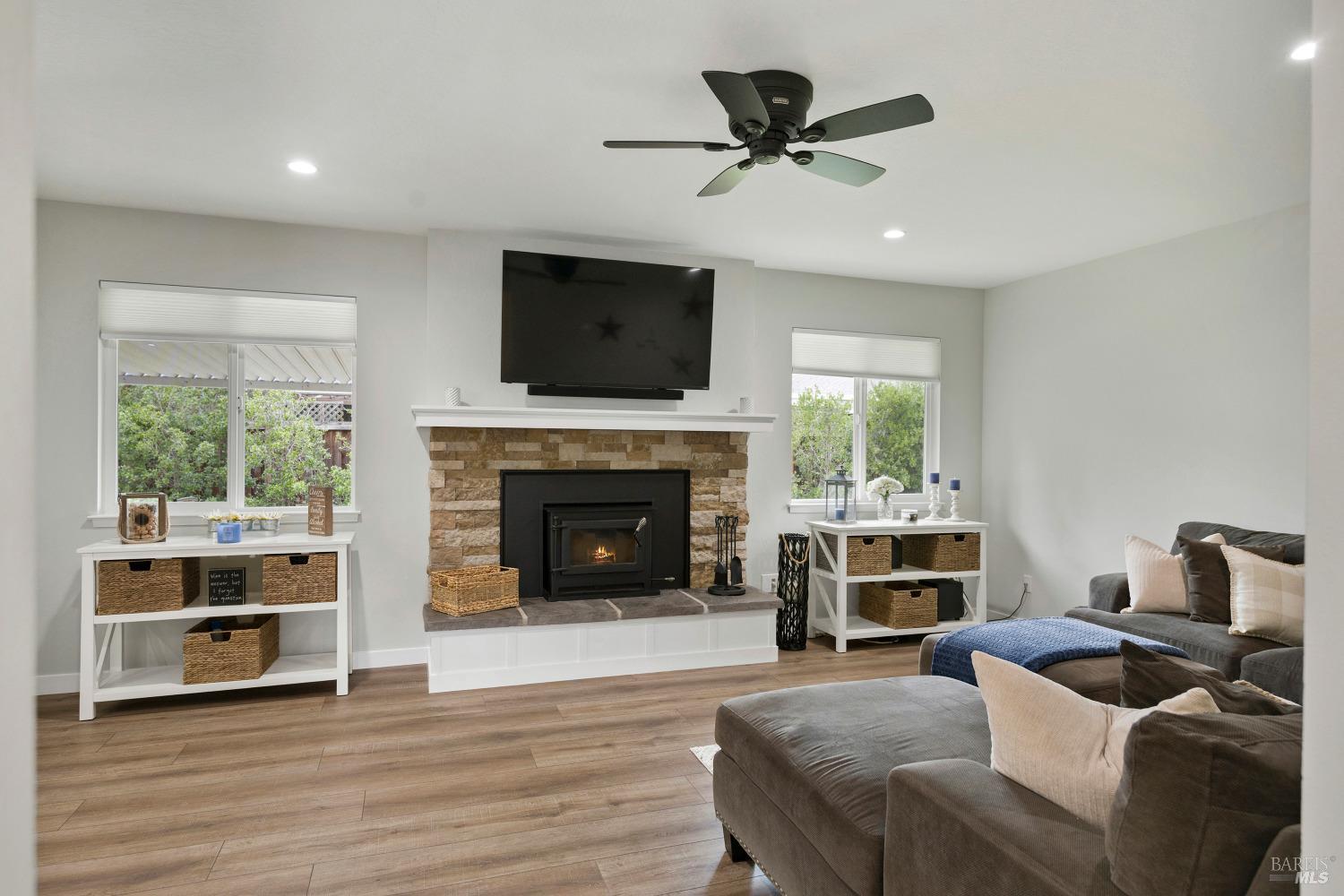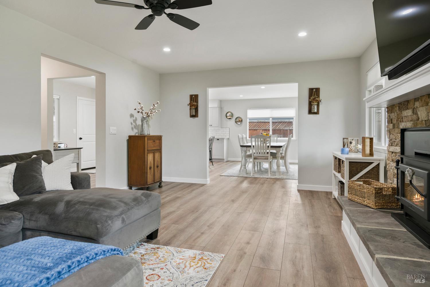Contemporary home located within the City of Sonoma. This single-story home is ideally positioned on a quiet cul-de-sac providing a serene retreat while being in close proximity to shopping, amenities, Sonoma Valley Hospital, and Sonoma Historic Plaza. The property boasts a welcoming curb appeal with manicured lawns, well maintained landscaping and RV parking. Interior offers thoughful open concept design to create inviting atmosphere. Updated home includes modern appliances, sleek countertops, luxury vinyl plank flooring, brand new HVAC and wood burning fireplace insert. The home comprises three bedrooms and 2-baths and sits on a generously sized landscaped yard that invites outdor rlaxation and entertainment. A spacious coverd patio area is perfect for al fresco dining or lounging. Large storge unit could be used as office. Room for pool!